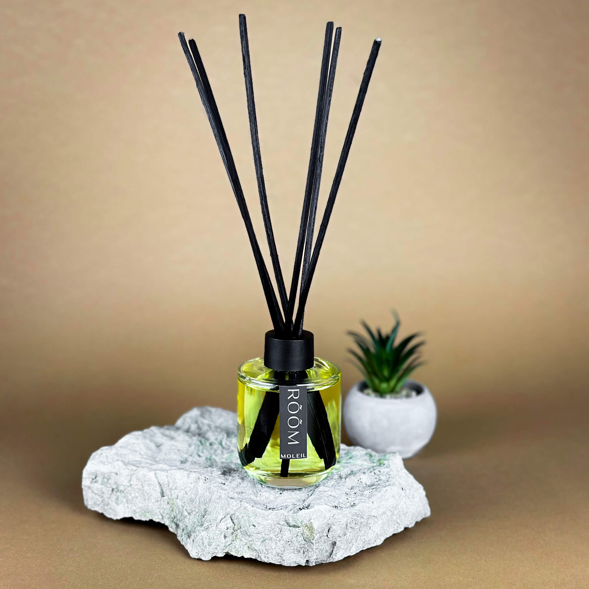 Moleil´i kodulõhnastaja RÕÕM on loodud selleks, et täita kodu ja tööruum kerguse ning positiivse meeleoluga. Minimalistliku disainiga klaaspudel sobib igasse interjööri ja lisab sellele elegantse aktsendi, olles samaaegselt ka praktiline meeleolu looja.